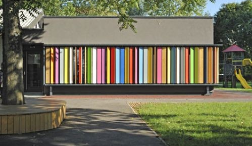 由于周?chē)鐓^(qū)兒童數(shù)量的不斷增加,Kekec幼兒園決定擴(kuò)建一間游戲室,由JureKotnik建筑公司進(jìn)行設(shè)計(jì)。考慮到這是一個(gè)為兒童服務(wù)的建筑,因此最重要的設(shè)計(jì)元素就是色彩,除此之外,設(shè)計(jì)師還希望新建筑的樣式更加靈活,融入一些玩具的特點(diǎn),讓孩子們能夠與之互動(dòng),從而增添一些娛樂(lè)性。而實(shí)現(xiàn)以上幾點(diǎn)只需要一個(gè)機(jī)關(guān)——像百葉窗一樣會(huì)“轉(zhuǎn)”的墻壁。