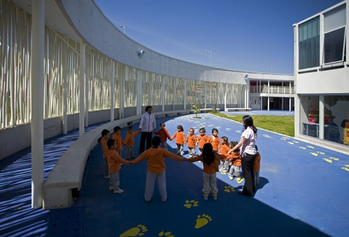 在哥倫比亞號稱美麗和邪惡并存的城市,首都波哥大有一家非常有特點的幼兒園,為埃爾波韋尼爾的幼兒園,這個幼兒園占地兩千一百平方米,由多個模板機構組成的,幼兒園設有五個單元,如多功能室、兒童俱樂部、廚房和就餐區等布局非常自然隨意,但是卻能以一個流通路徑相互連接到一起。