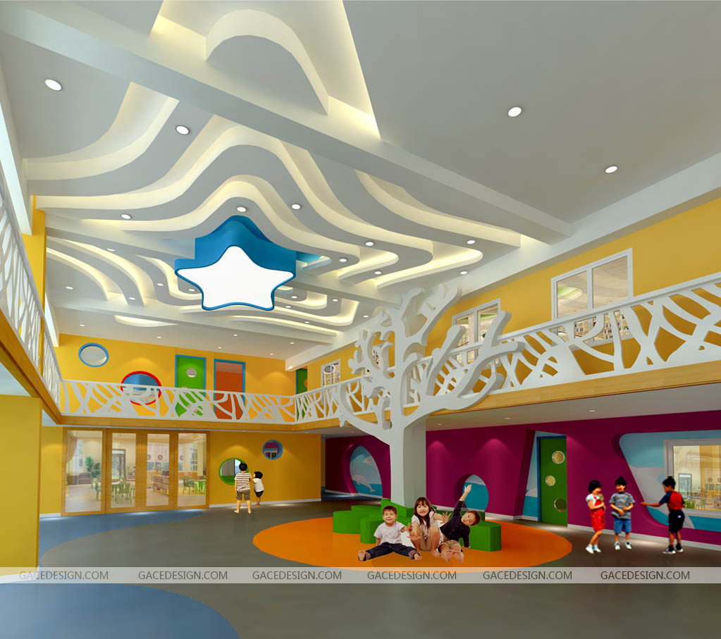 傳統的幼兒園給人們的第一印象就是五顏六色的墻面,墻上貼滿了格式各樣的一些剪紙卡通形象,室內各種不同的兒童元素搭配在一起,覺得這樣的環境適合孩子們,孩子們就是喜歡這樣五顏六色空間,但實際上孩子們非常聰明,孩子們在成長環境中一個環境的好壞會影響孩子們的判斷,所以幼兒園室內設往往需要采用不同的顏色去合理的搭配來達到最好的效果。