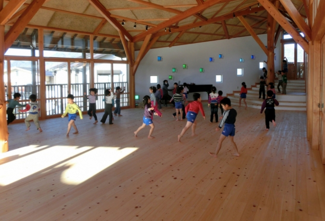 位于日本的美濃市在2012年建成一所木質托兒所建筑,這個幼兒園采用了Mokuiku的結構體系,反應了教育環(huán)境的一種手段同時也是反應了一個回收利用的社會觀念。美濃市托兒所的設計,反映了“本地生產、本地消費”的創(chuàng)新設計理念,在文化和環(huán)境上實現(xiàn)了可持續(xù)發(fā)展。