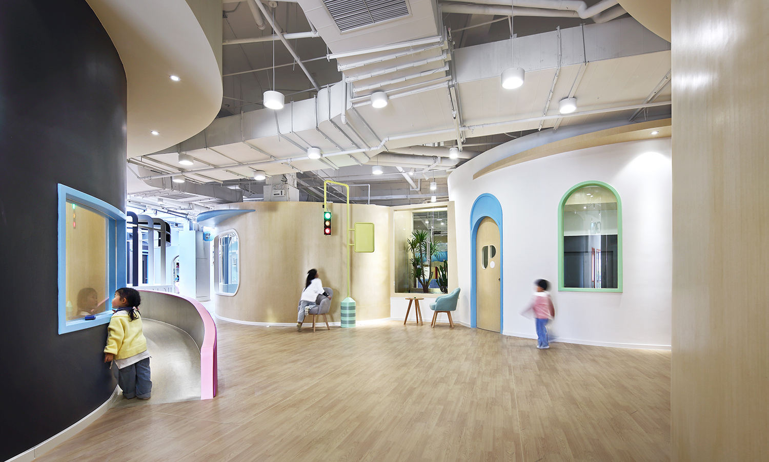像孩子一樣去想象,設計師嘗試以孩子的視覺去觀察城市,挖掘城市與建筑、空間與孩子的關系。按照一定的概念和比例將真實的城市縮小,孩子是微縮城市里的小市民。設計師希望成長中心能成為孩子的另一個溫暖的家,孩子在這個空間是自由的、無拘束的。