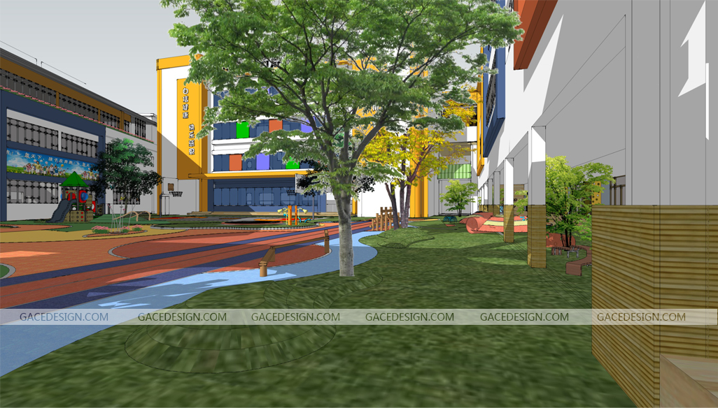地面宜采用PVC地面國外幼兒園設計或地板,墻面以乳膠漆為主。